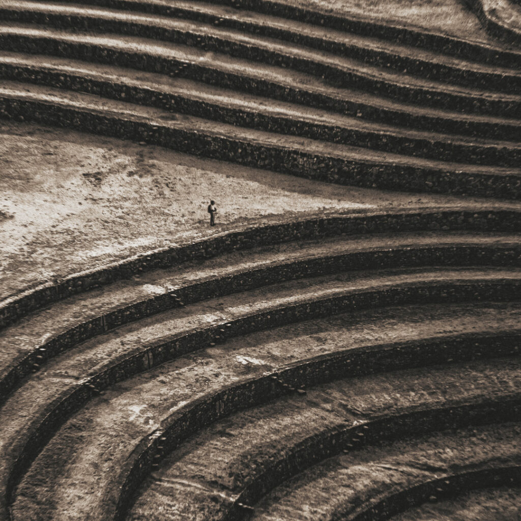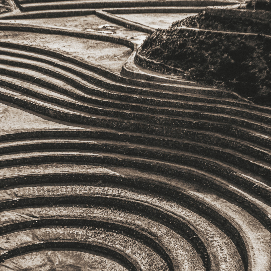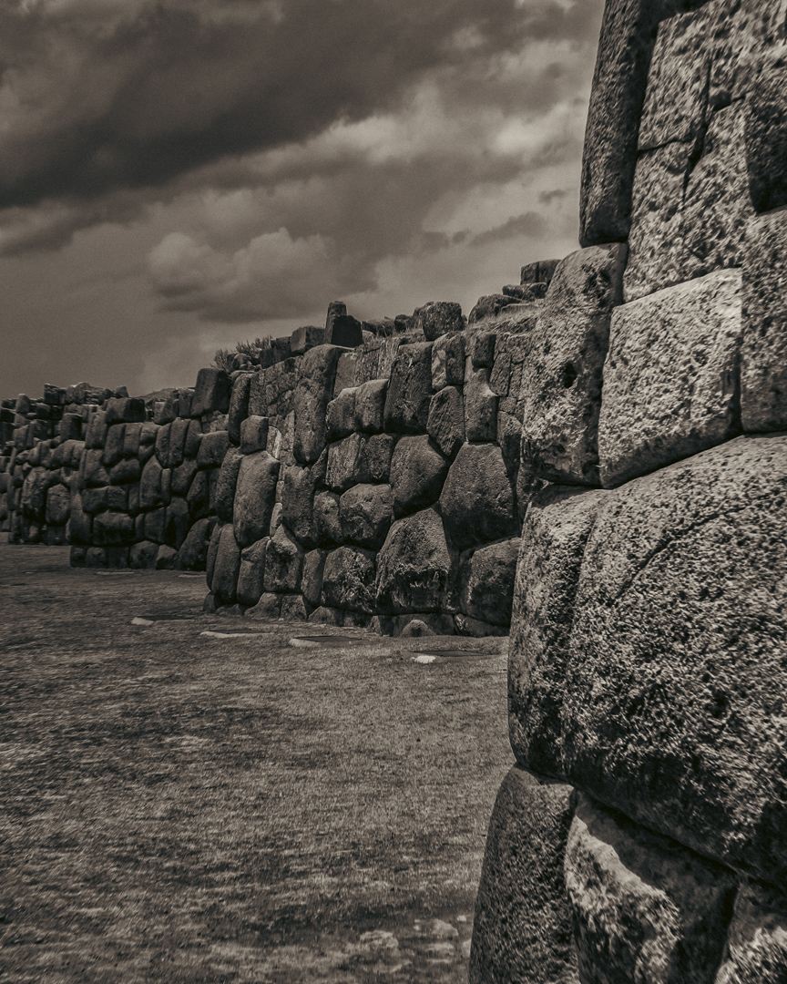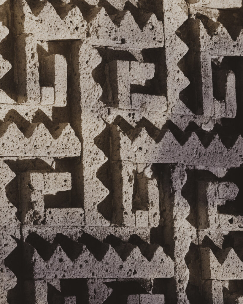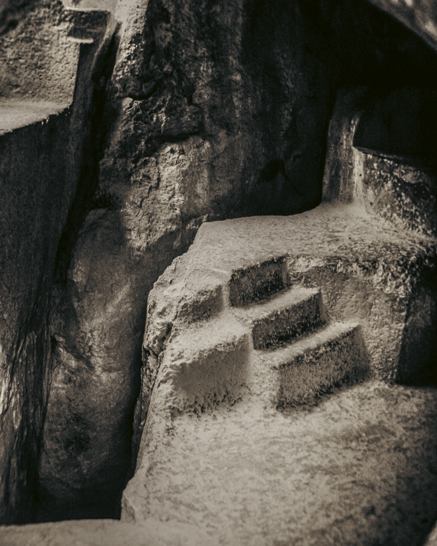 Esta serie nace de un viaje por territorios que conservan la memoria en su materia: las piedras de Perú y México, talladas, erosionadas, aún vibrantes. Cada imagen es una capa del suelo, una superficie que guarda las marcas del poder, la fe y el sacrificio.
