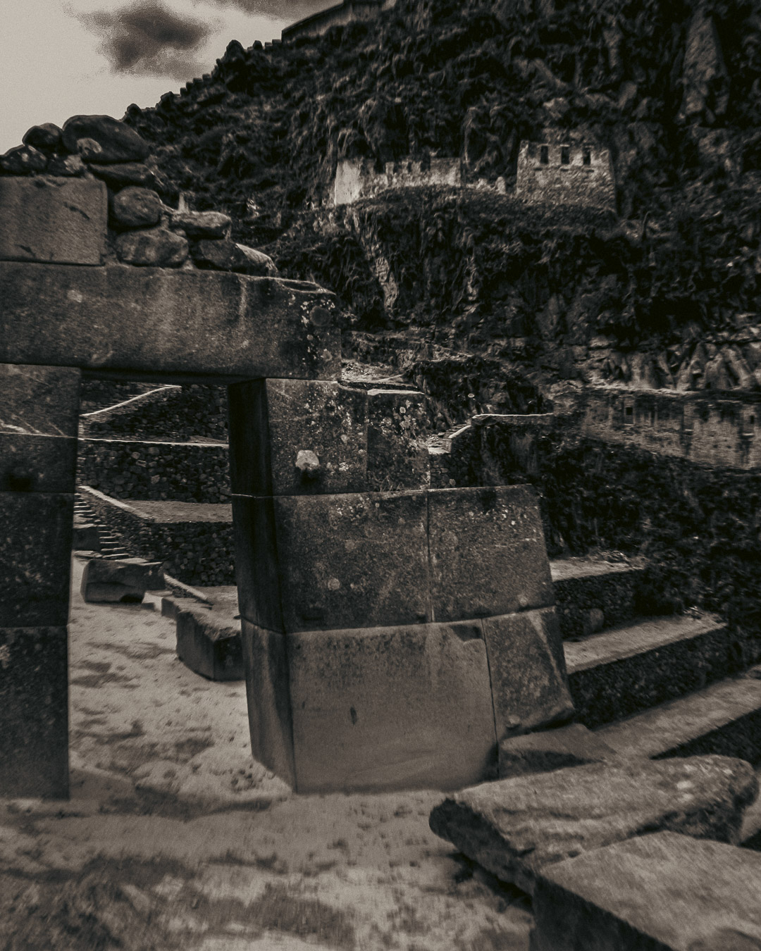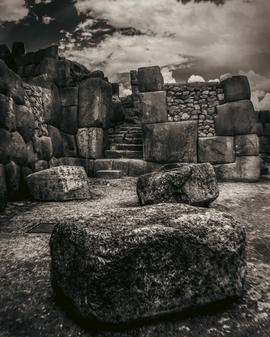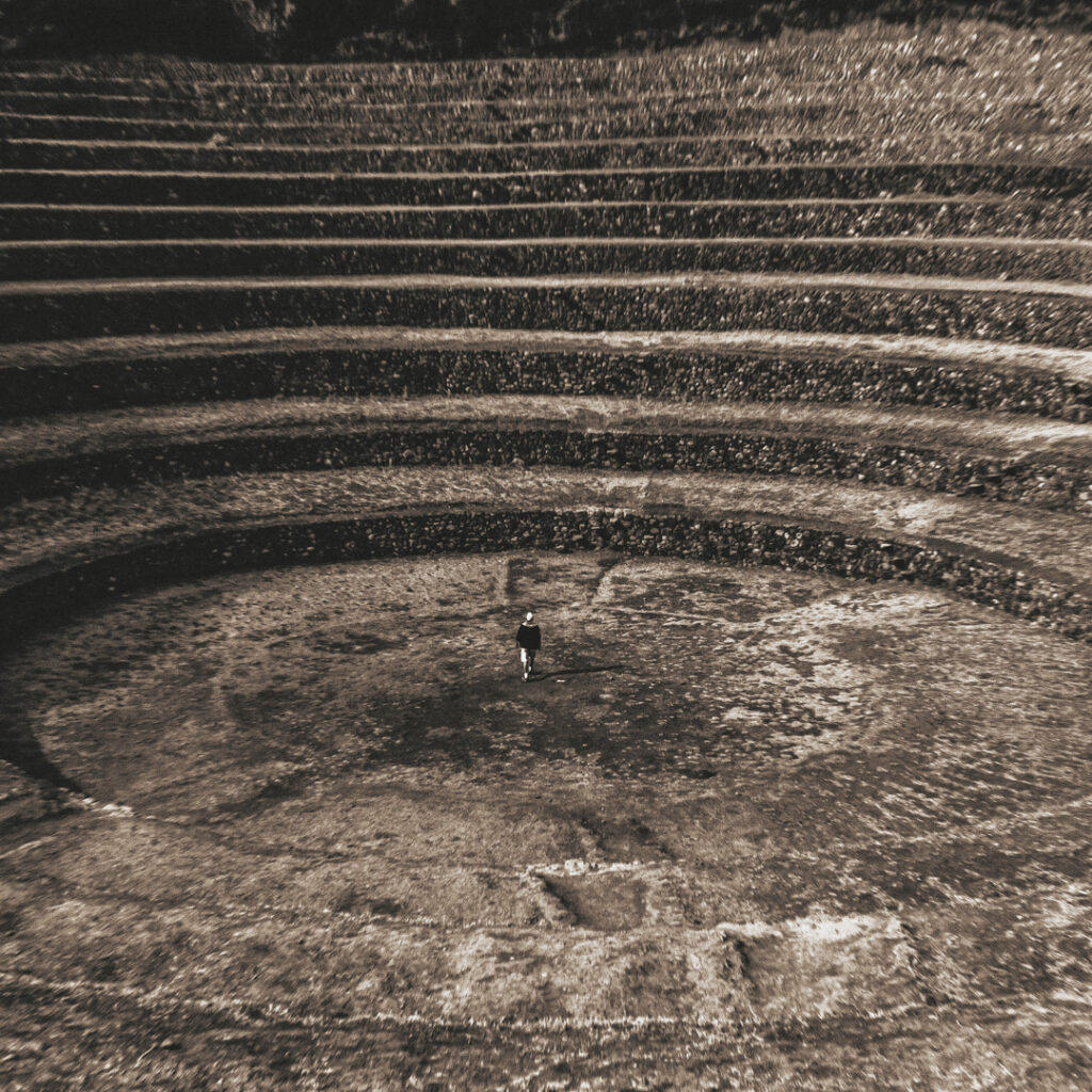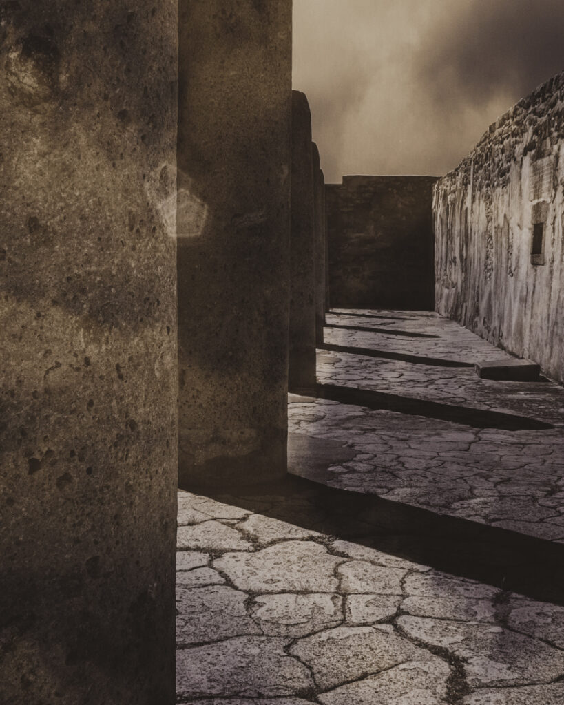 Esta serie nace de un viaje por territorios que conservan la memoria en su materia: las piedras de Perú y México, talladas, erosionadas, aún vibrantes. Cada imagen es una capa del suelo, una superficie que guarda las marcas del poder, la fe y el sacrificio.