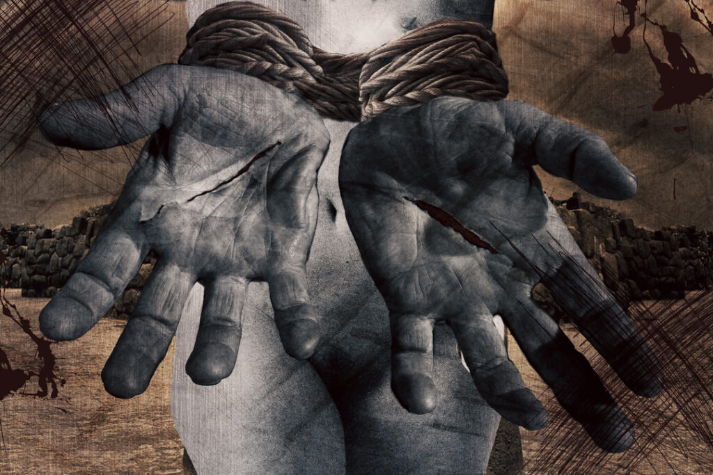 Las manos abiertas, atadas, expuestas, son el centro de gravedad de esta cartografía. Hablan del cuerpo sometido, pero también del cuerpo que recuerda, que todavía ofrece, que no olvida.