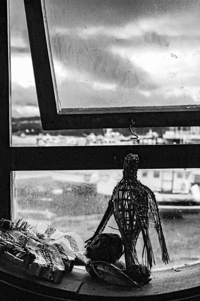 No busco documentar Chiloé tal como “es”, sino como se siente cuando una se deja atravesar por su clima, su silencio, sus casas que crujen, sus ventanas que miran de vuelta, sus sombras persistentes. Aquí la tradición convive con lo invisible, la naturaleza no es un fondo sino una fuerza, y lo cotidiano está siempre a un paso de lo mítico.